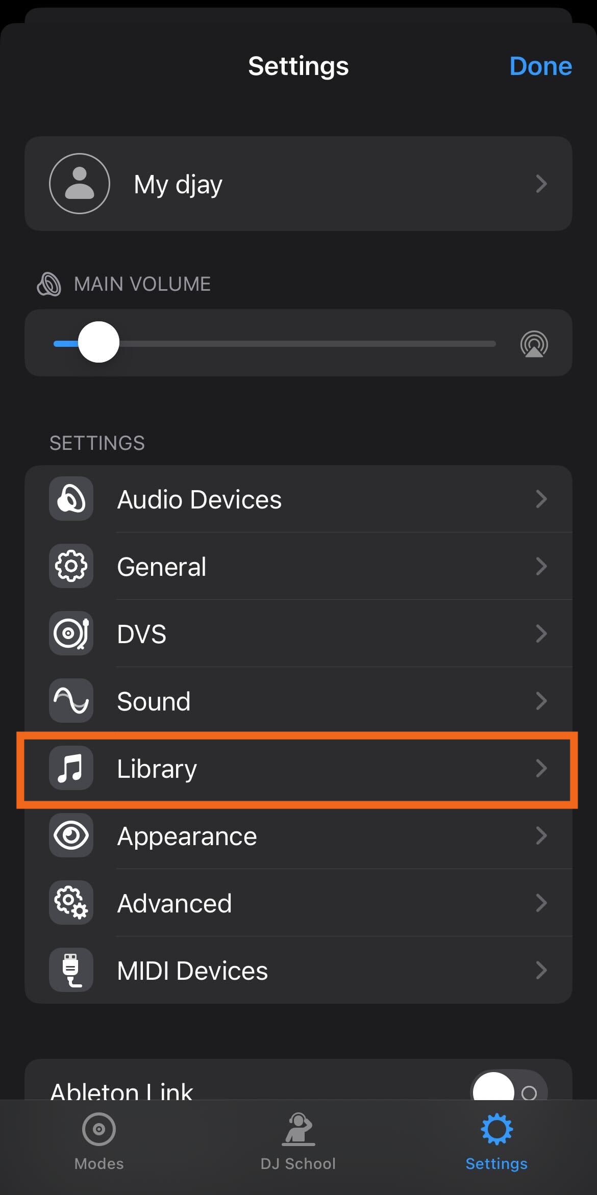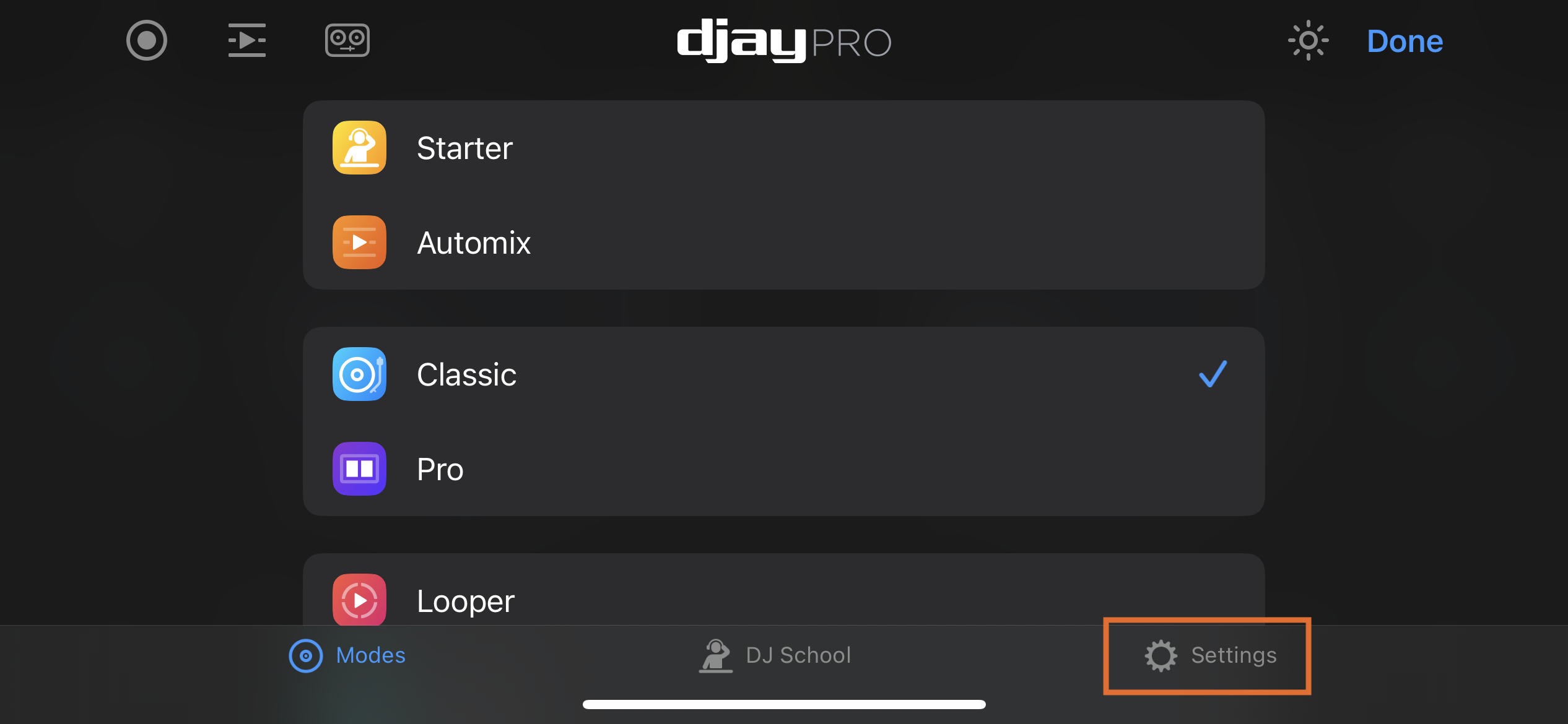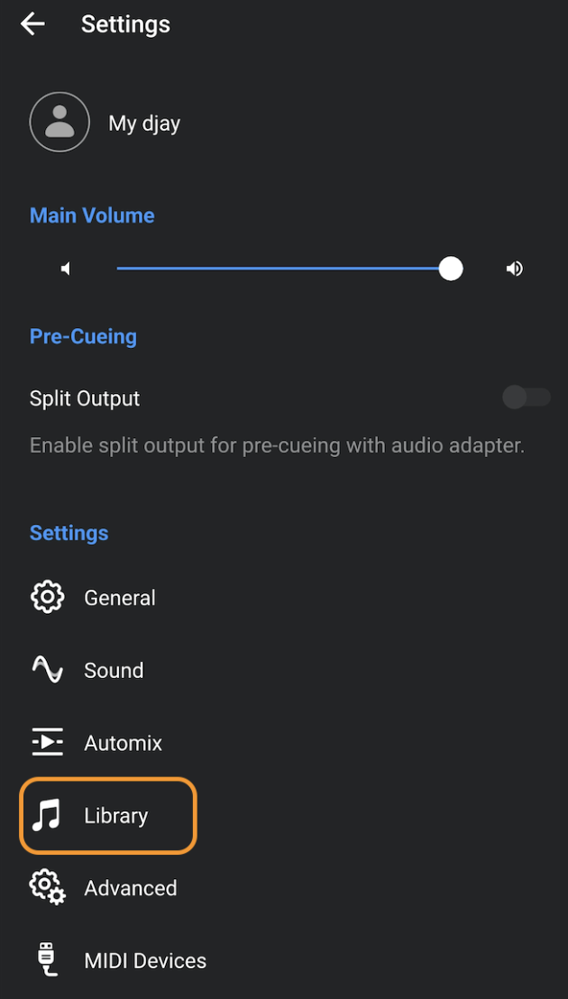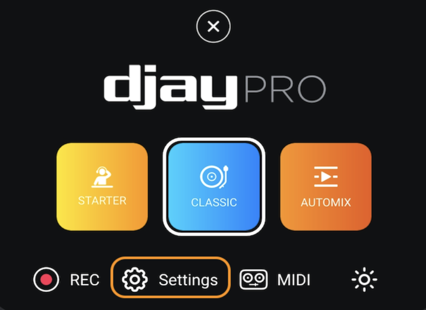 - Go to djay's Settings by tapping the cog icon.