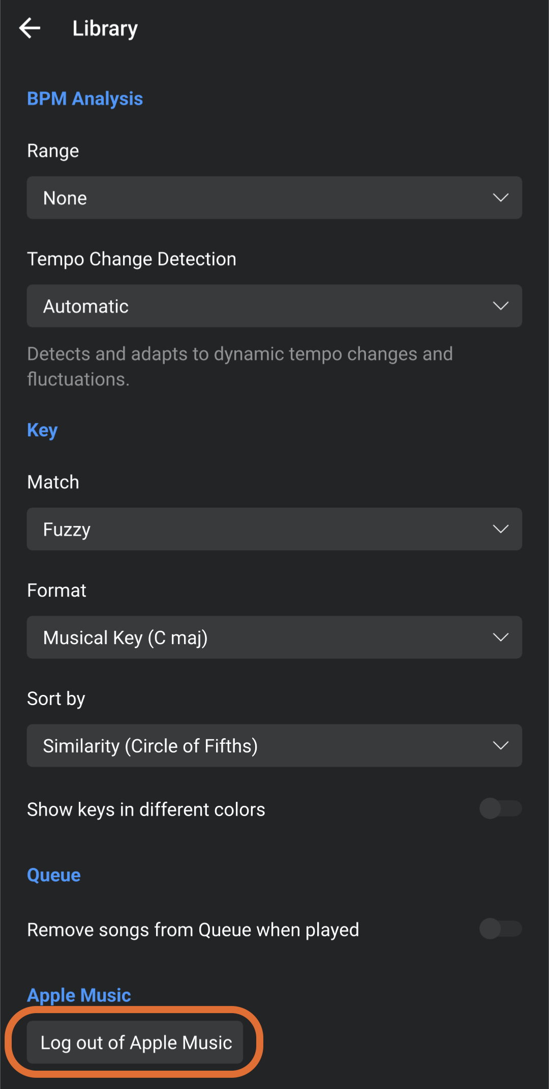 - Finally, click "Log Out of [Streaming Service]" — in this example, "Log out of Apple Music."
