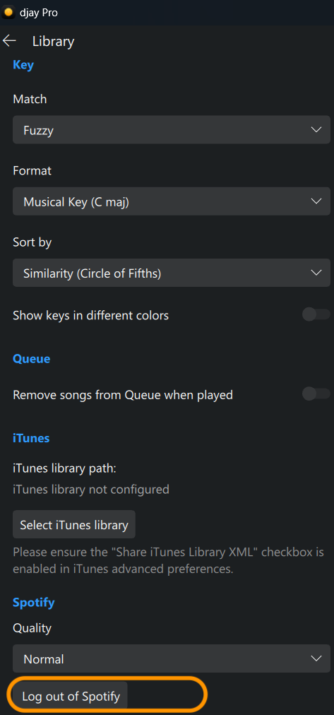 To log in again with the same account or a different account, navigate to the streaming service source in djay's music library and select "Log in to [Streaming Service]."