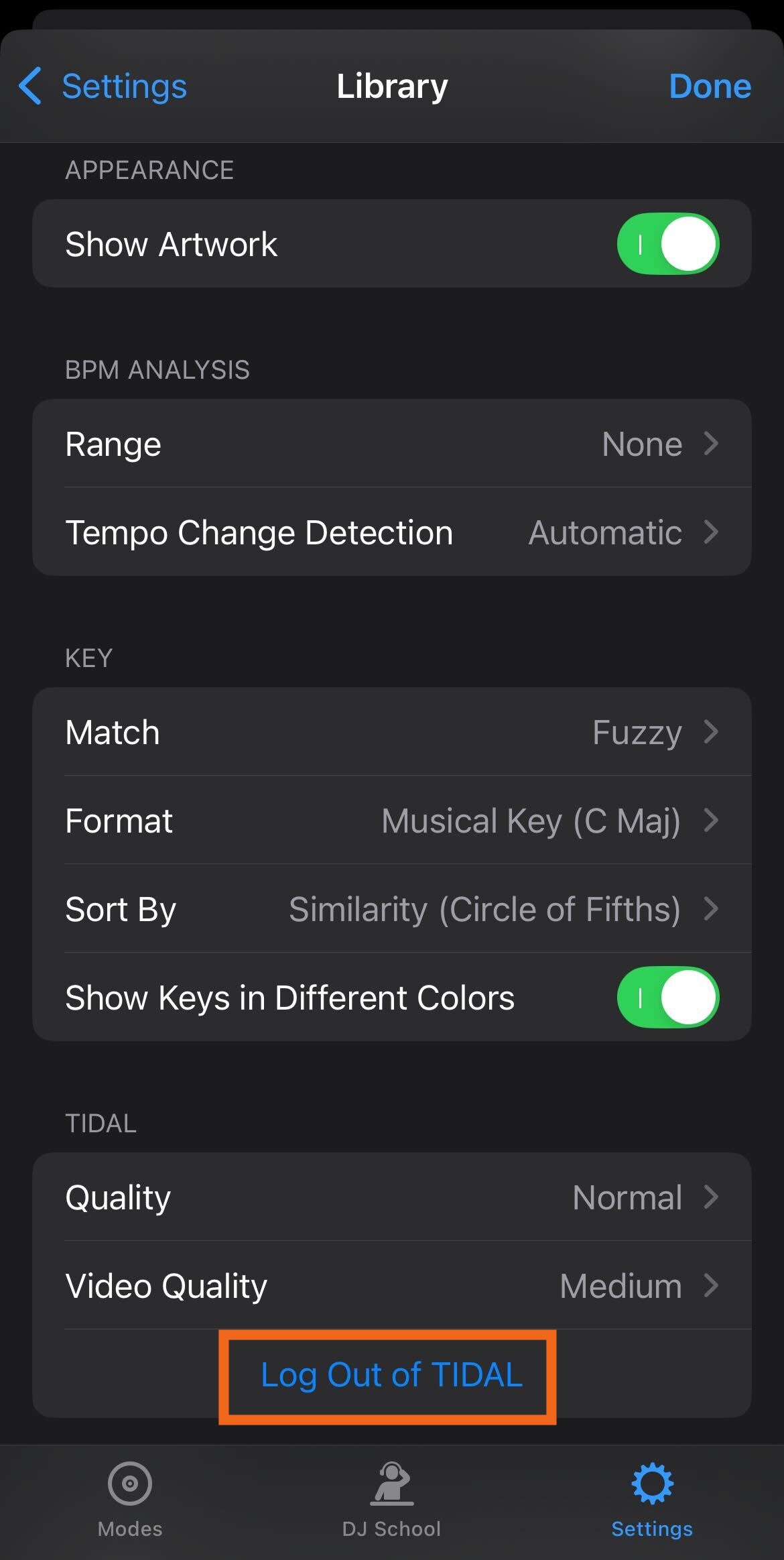 - Tap "Log Out of [Streaming Service]" — in this example, "Log Out of TIDAL".