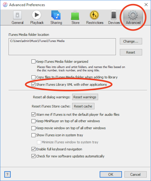 - Follow the steps above to enable iTunes Library XML sharing in iTunes.