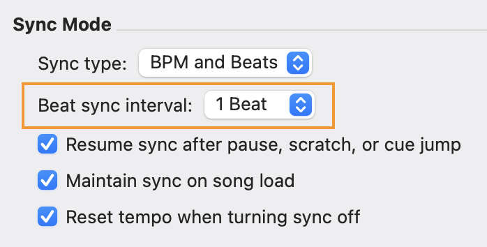 - Choose whether to sync BPM only or BPM and beats.