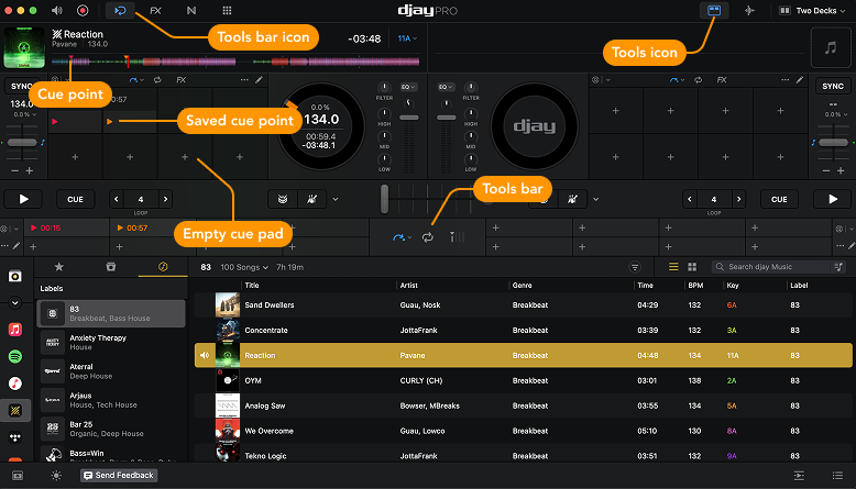 You can set up to 16 cue points, each giving you instant access to a chosen moment in the track. Set them during a mix or prepare them in advance—they’ll stay saved in your collection.