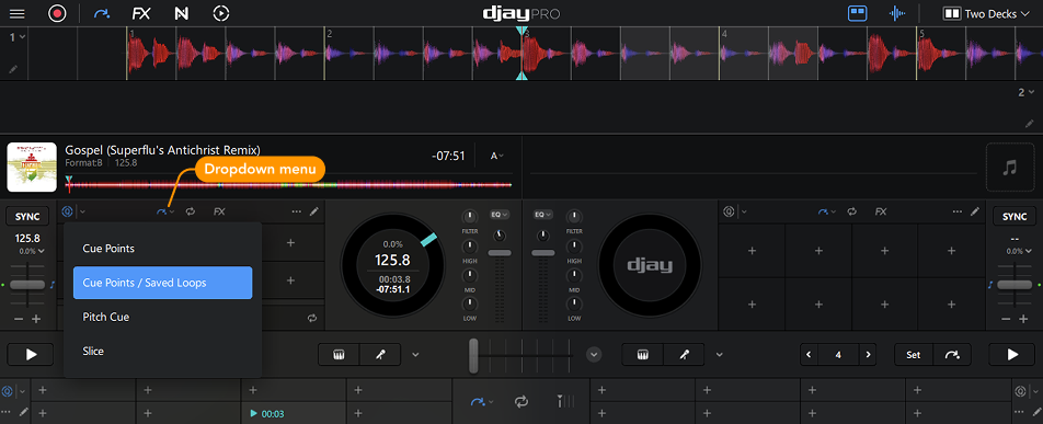 The Cue Points & Saved Loops tab gives you access to all of your saved cue points, along with two additional saved loop slots.