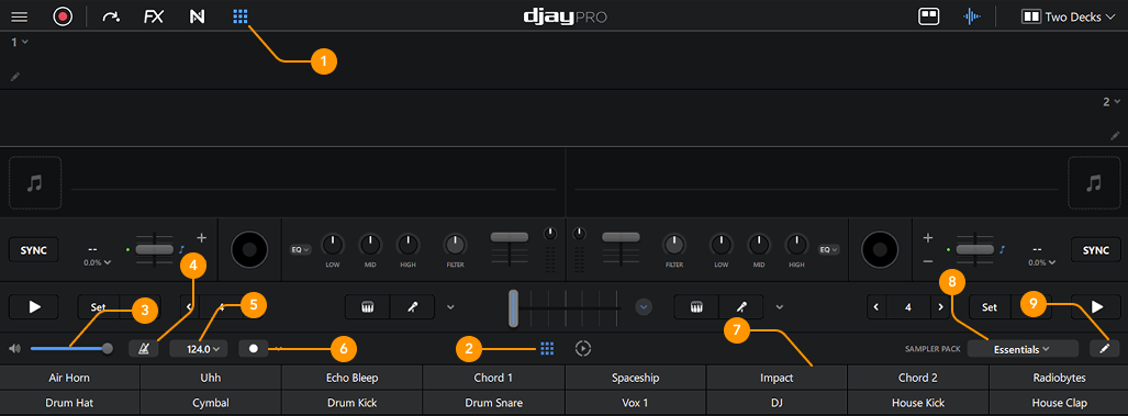 Sample editor: Swap or remove samples, or record short samples directly from Deck 1 or Deck 2.
