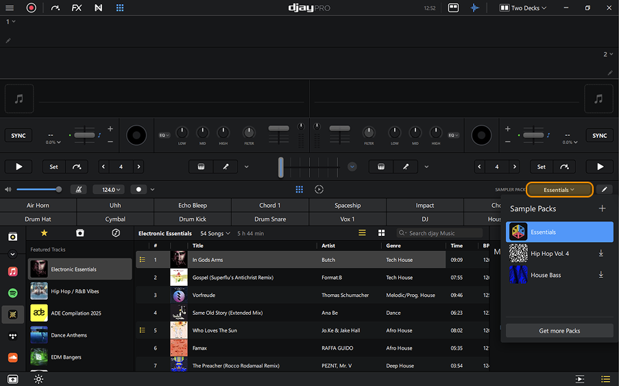 djay Pro comes with a variety of free packs, plus an ever-growing library of genre-based options you can unlock, covering styles from Chillout, Deep House, Hip Hop, Techno, and beyond.